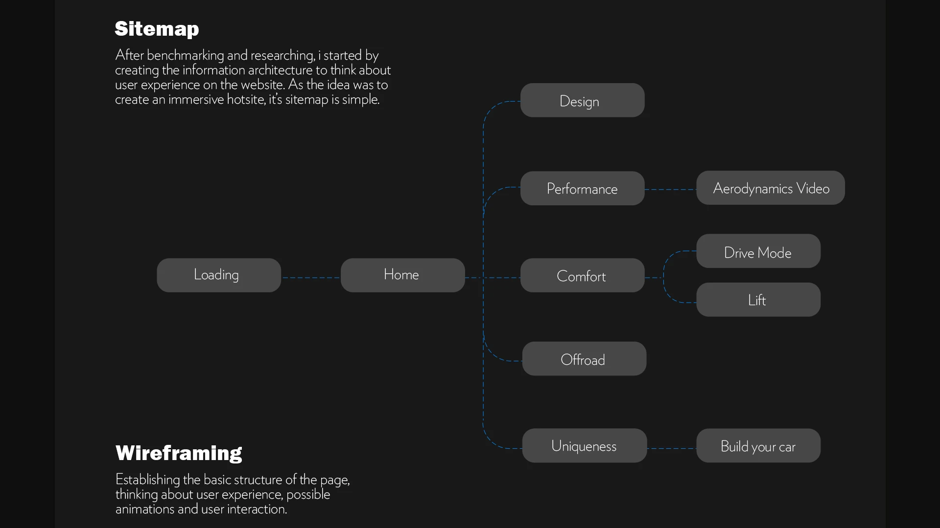 Development of an interactive website focused on user experience, using Motion Design to enrich the journey and bring the car to life digitally.